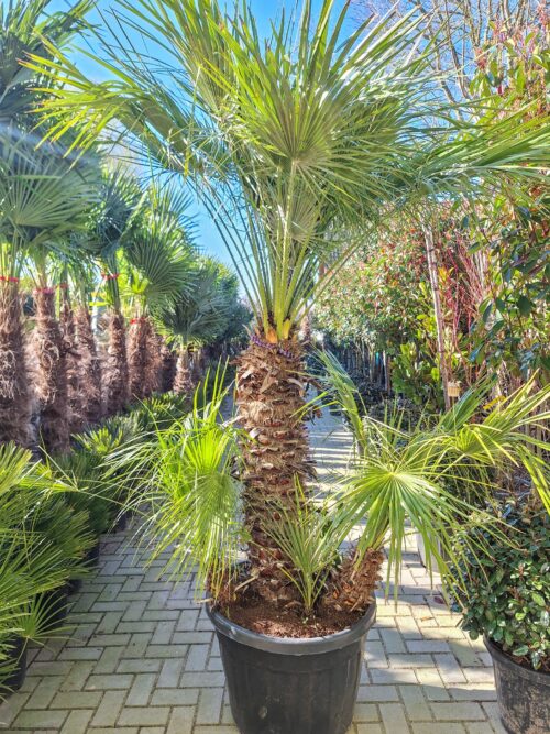 De Trachycarpus Fortunei is in verschillende maten verkrijgbaar. De stamhoogtes hiervan variëren van 10cm tot 180cm. De totale planthoogtes variëren van 50cm tot 300cm. Grotere maten zijn op aanvraag verkrijgbaar.