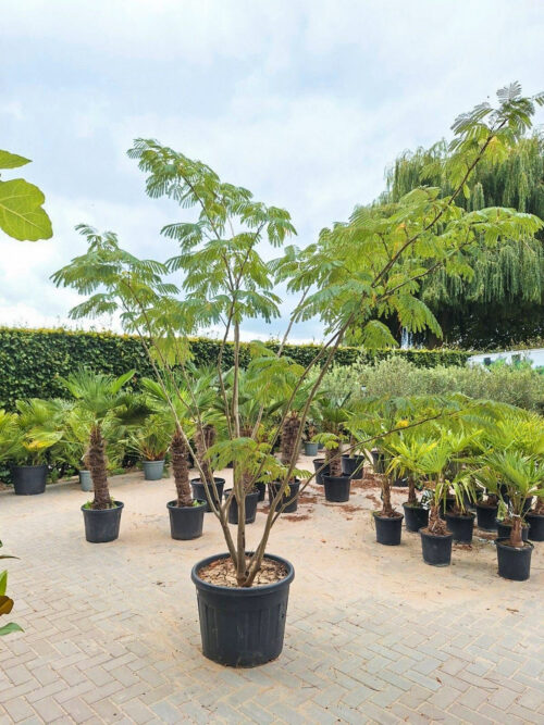 De Albizia Julibrissin wordt ook wel de Perzische slaapboom genoemd. De slaapboom heeft prachtige kleine blaadjes die ’s avonds zullen sluiten. Dit is de reden waarom hij ook wel een slaapboom genoemd wordt. Vaak groeit de Albizia als stuik of als boomvorm. Wanneer de Albizia als boom geplant wordt zal deze vaak in parasol achtige vorm groeien. Dit geeft een mooi tropische effect in de tuin. Naast de mooie kleine blaadjes heeft de Albizia ook een prachtige bloeiwijze. Wanneer de boom eind juli/oktober in bloei staat komen er tropische bloemetjes tevoorschijn. De slaapboom is zeker een eyecatcher in de Nederlandse tuin.